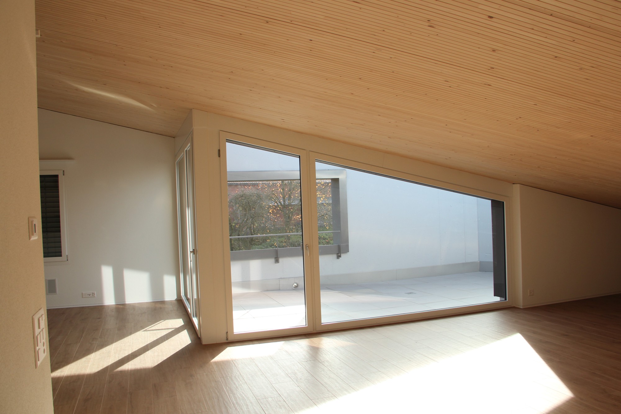 Es entstehen acht grosszügige 3 ½- und 4 ½- Zi-Wohnungen. Das MFH organisiert sich über ein Untergeschoss, ein Eingangsgeschoss mit Einstellhalle, drei Vollgeschosse und ein Dachgeschoss.