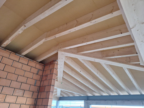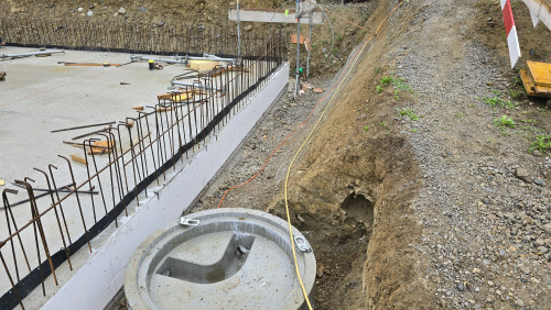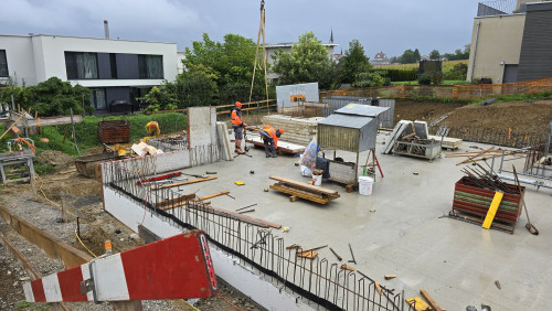 Über dem Ortszentrum von Nottwil, an erhöhter Hanglage, entsteht ein Zweifamilienhaus mit Seeblick. Das Gebäude organisiert sich über drei Geschosse. Beide Wohnungen verfügen über grosszügige Terrassen, Gartensitzplätze und je eine Doppelgarage. Ein flach geneigtes Walmdach in Blech, Erd- und Obergeschoss mit einer Holzverschalung und das Untergeschoss in Klinker gliedern das Gebäude horizontal.