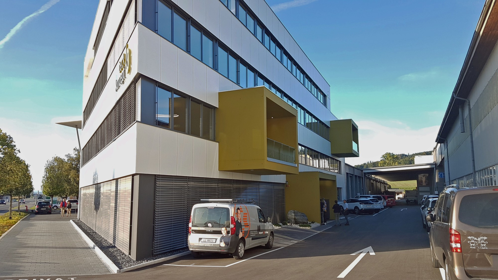 Die beck konzept ag wurde mit einem Kopfbau ergänzt, der den Brand der Unternehmung nach aussen sichtbar macht.
